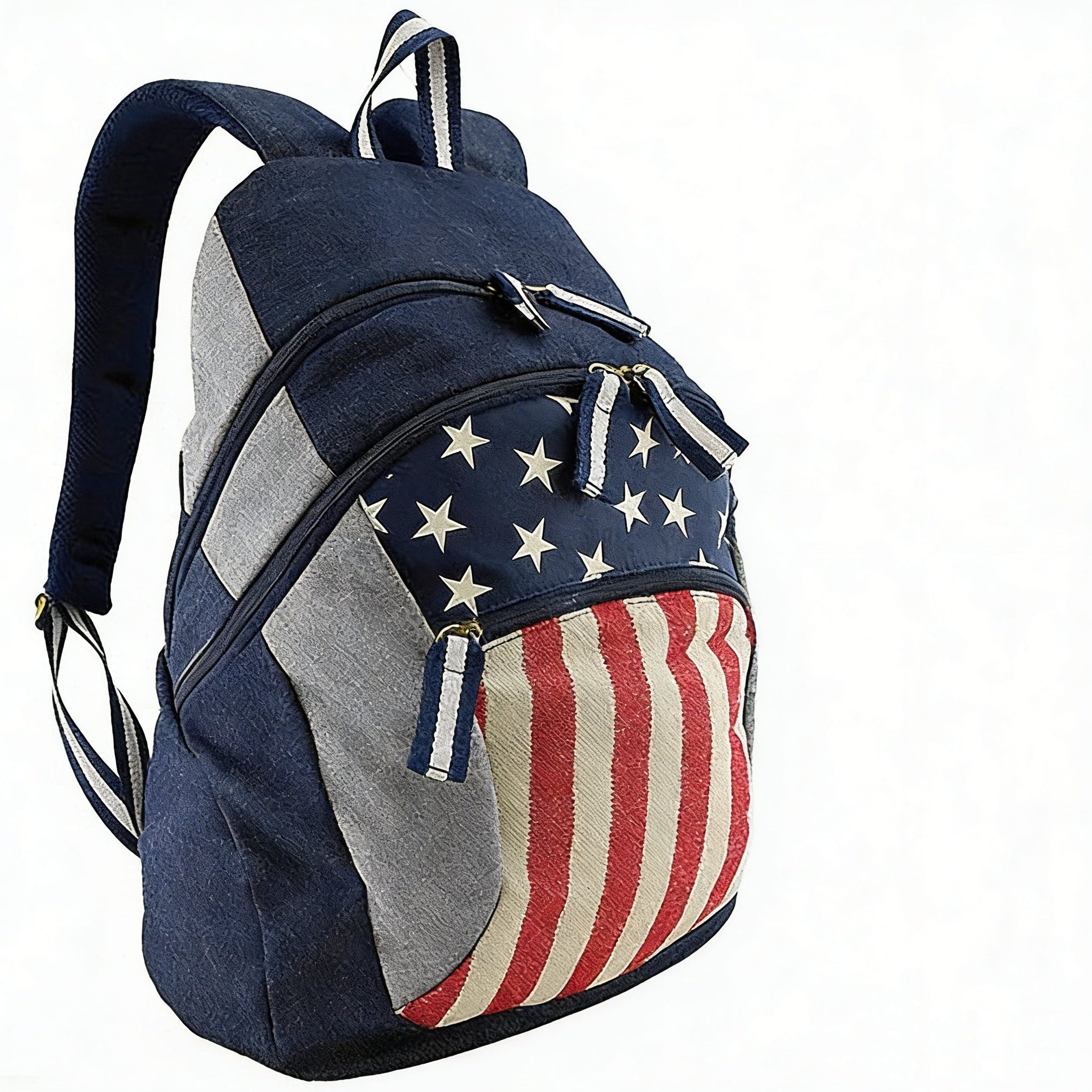 Striped Webbing on the shoulder straps and zipper pullers.