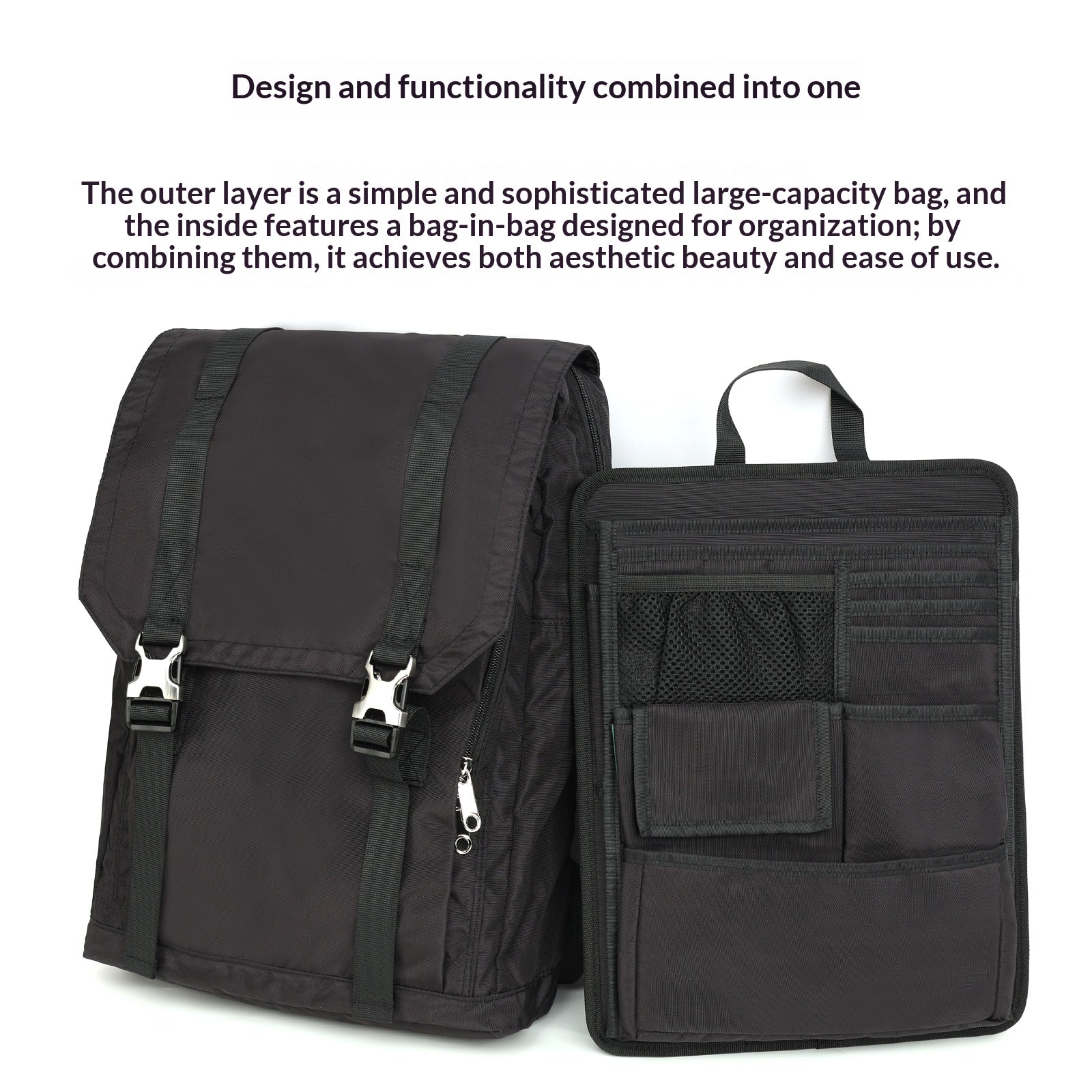 - Dimensions: Backpack H 42cm(16.5") X W 30cm(11.8") X Depth 10cm(3.94"), Insert Organizer H 36cm(14.17") X W 28cm(11") X Depth 4.5cm(1.77")