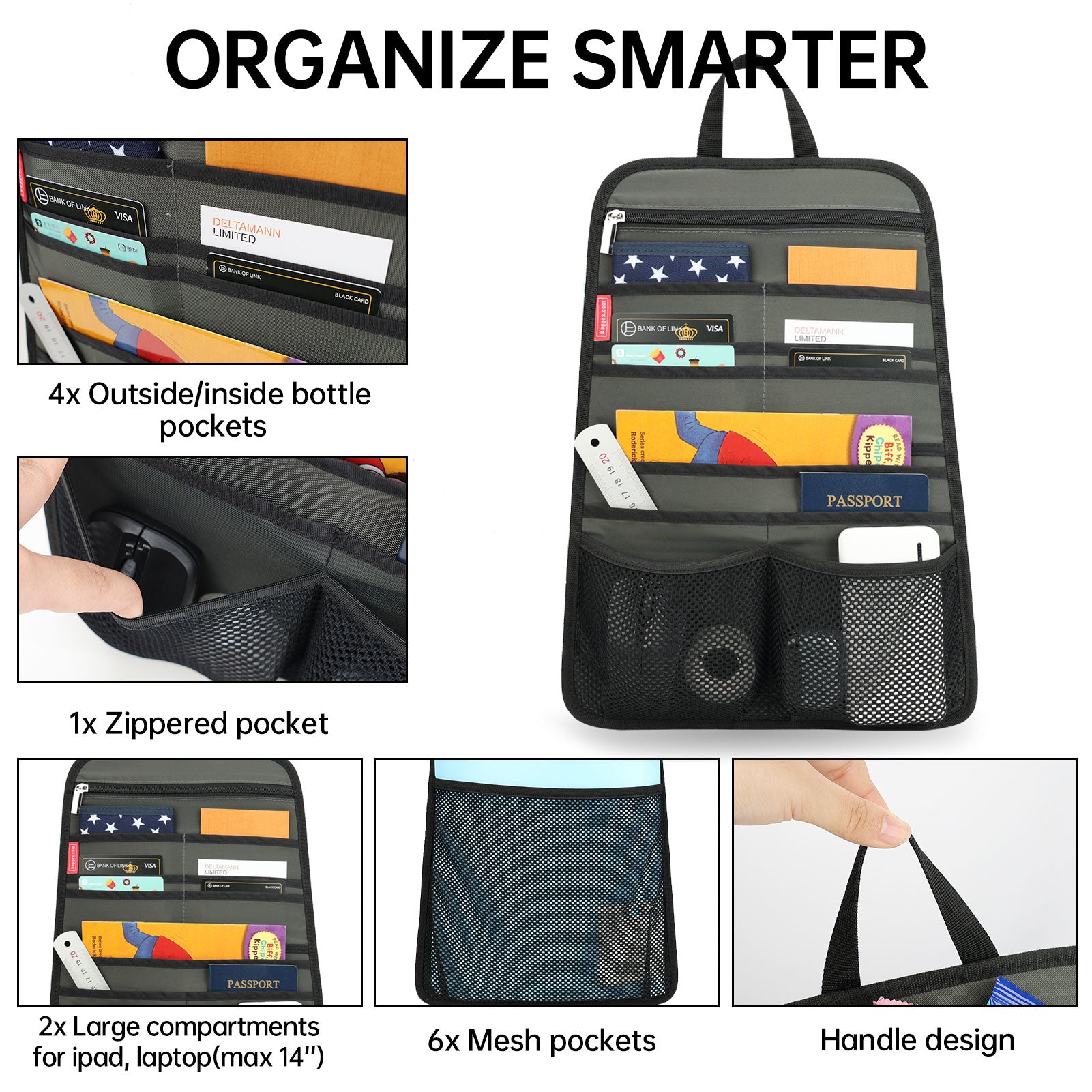 - There are a zipper pocket and three open pockets can be used for documents, day planner, small gadgets. etc.